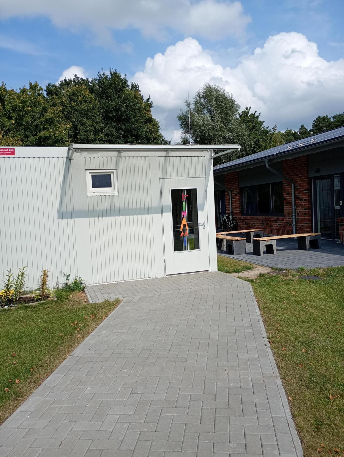 1 Gruppenraum im Container, 1 Funktionsraum mit Küche, Schulhof und Turnhalle